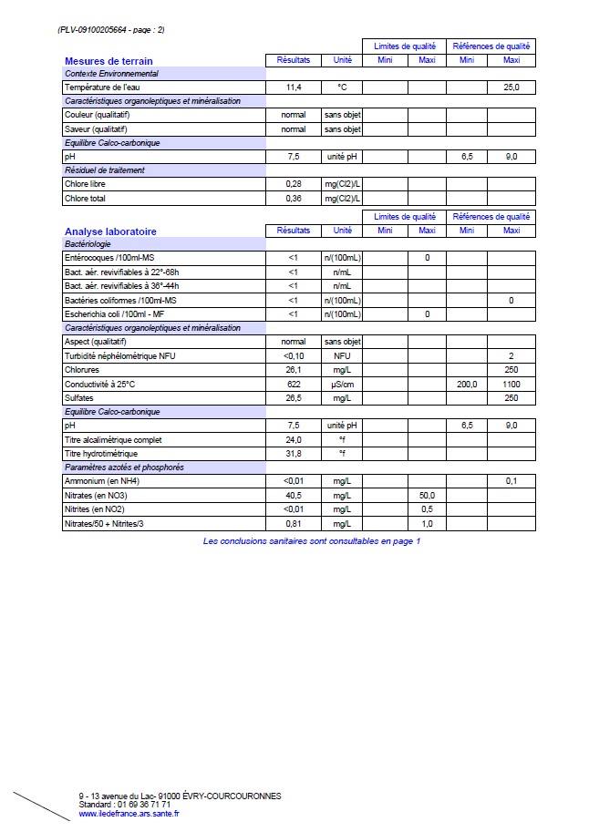 Mars 2026 - Contrôle sanitaire des eaux
