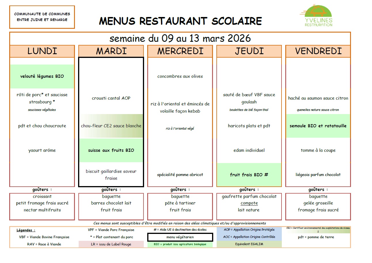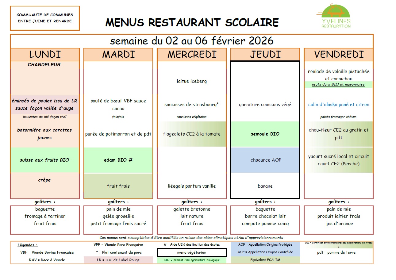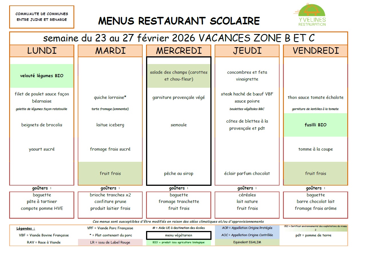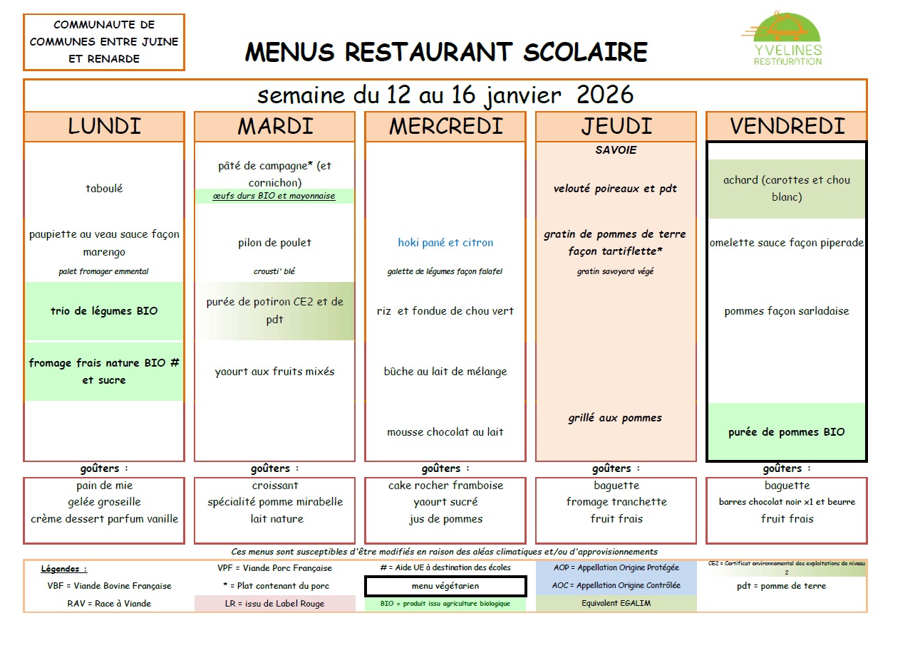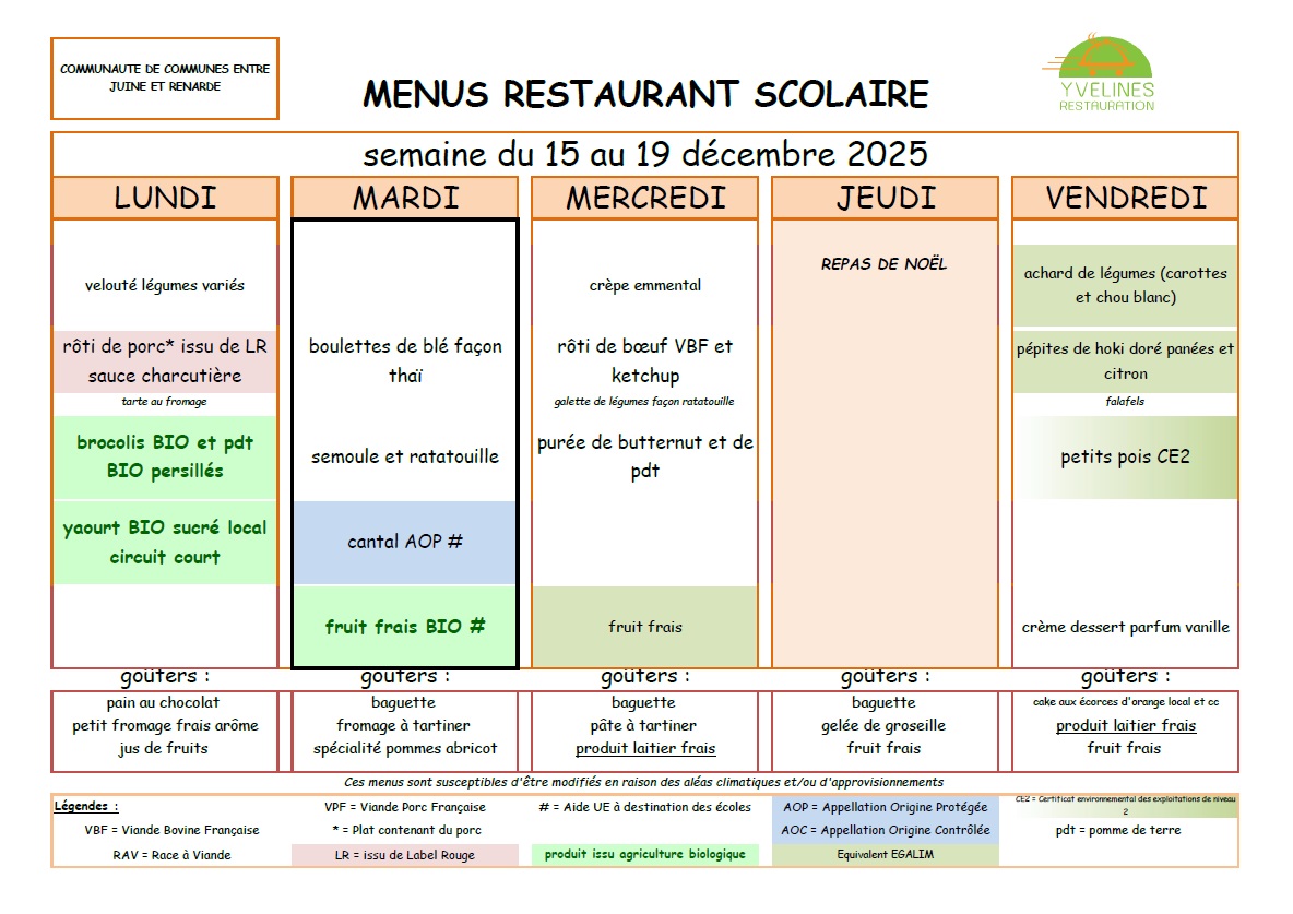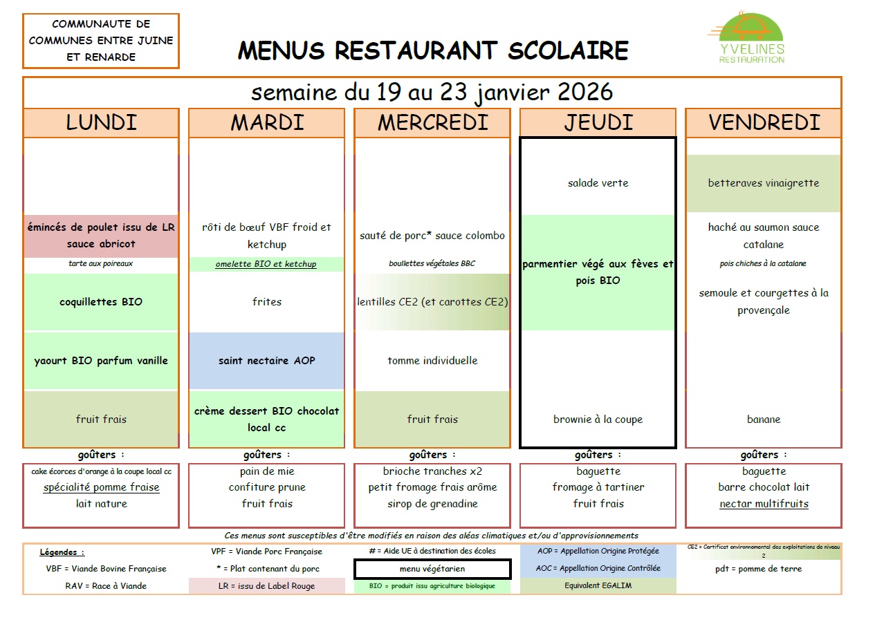 Remarque importante : Le tarif des repas de la cantine est de la responsabilité de la Communauté de Communes "Entre Juine et Renarde".