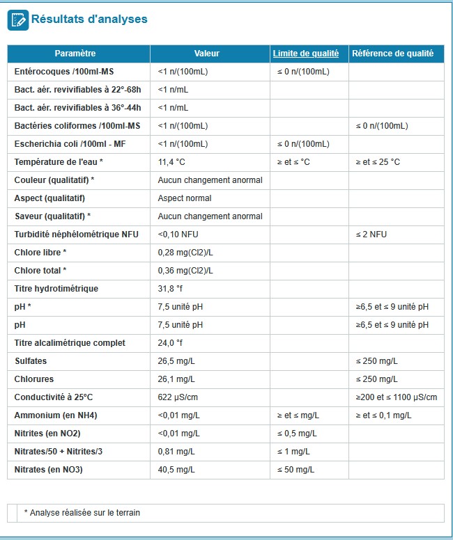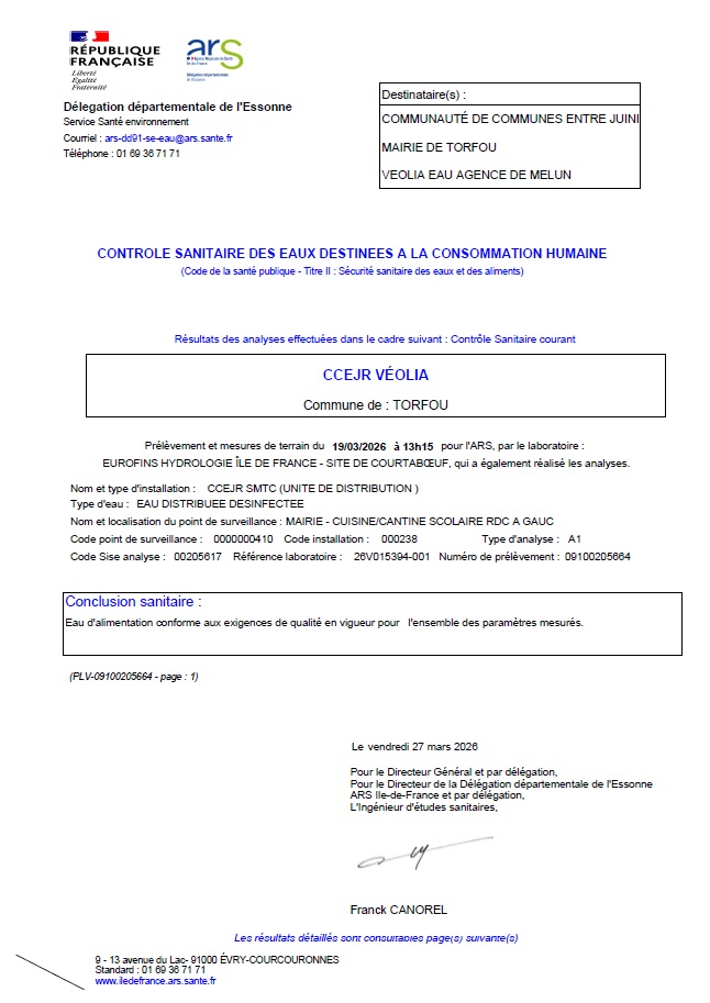Mars 2026 - Contrôle sanitaire des eaux
