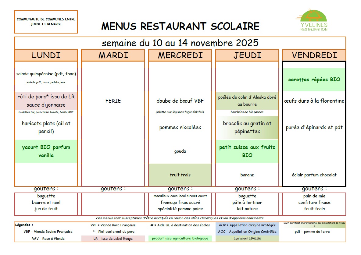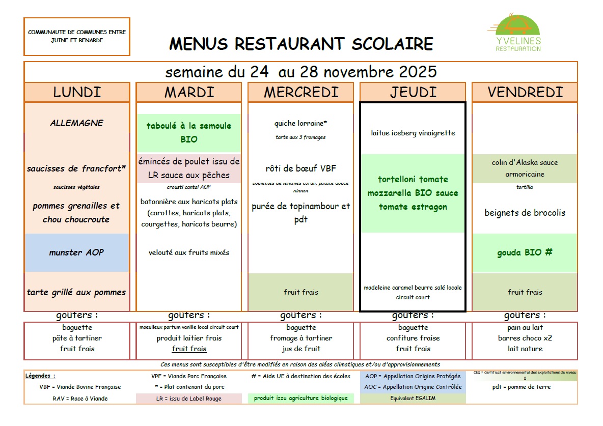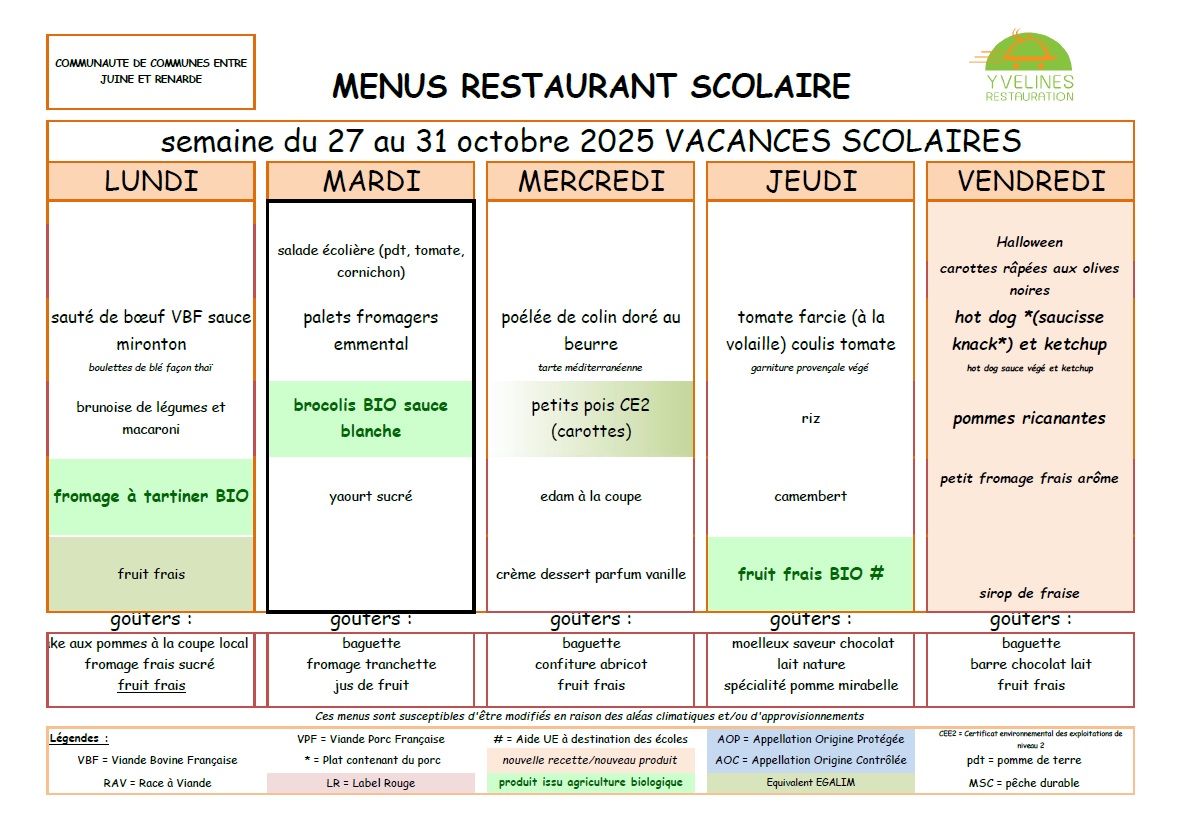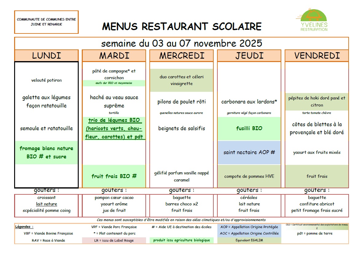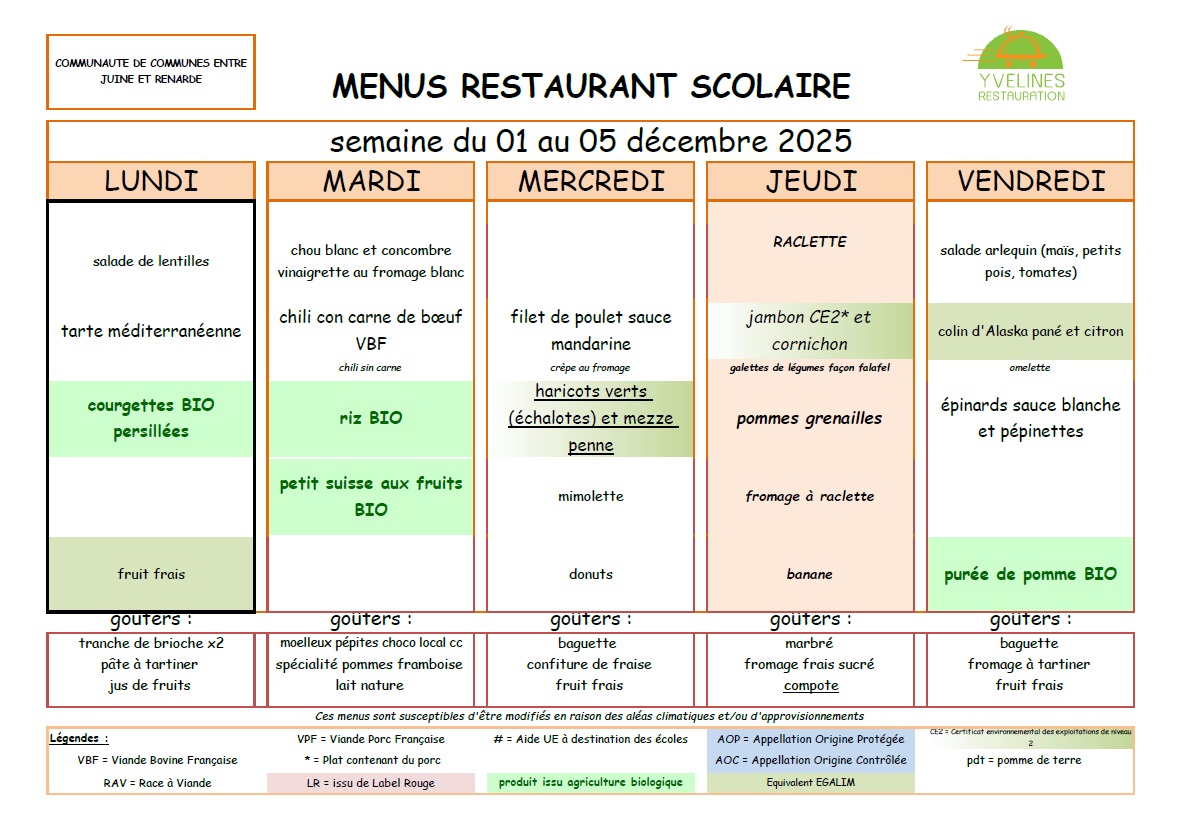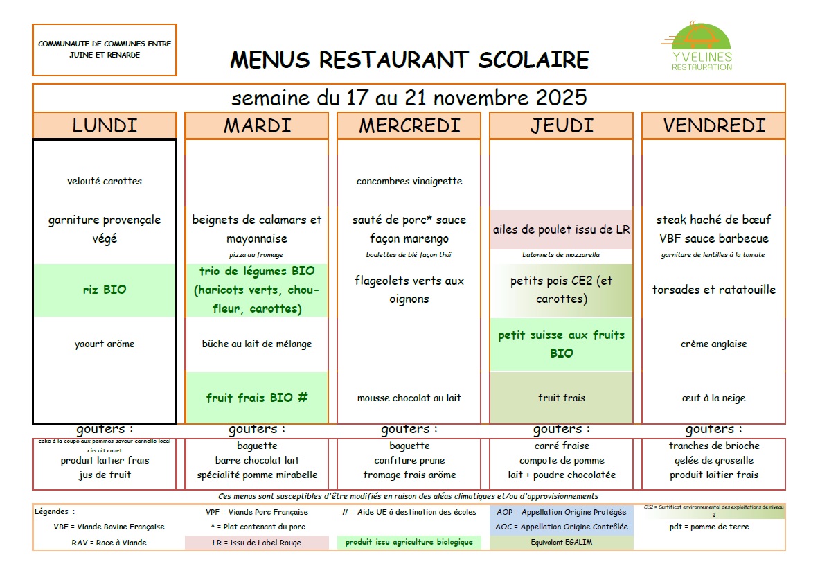 Remarque importante : Le tarif des repas de la cantine est de la responsabilité de la Communauté de Communes "Entre Juine et Renarde".