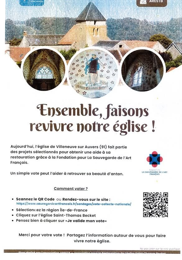 Sélectionnez la région Île-de-France. Cherchez l’église de Villeneuve-sur-Auvers et votez pour elle. Votre vote ne prend que quelques secondes, mais il aura un impact durable pour préserver ce lieu chargé d’histoire et de mémoire collective.