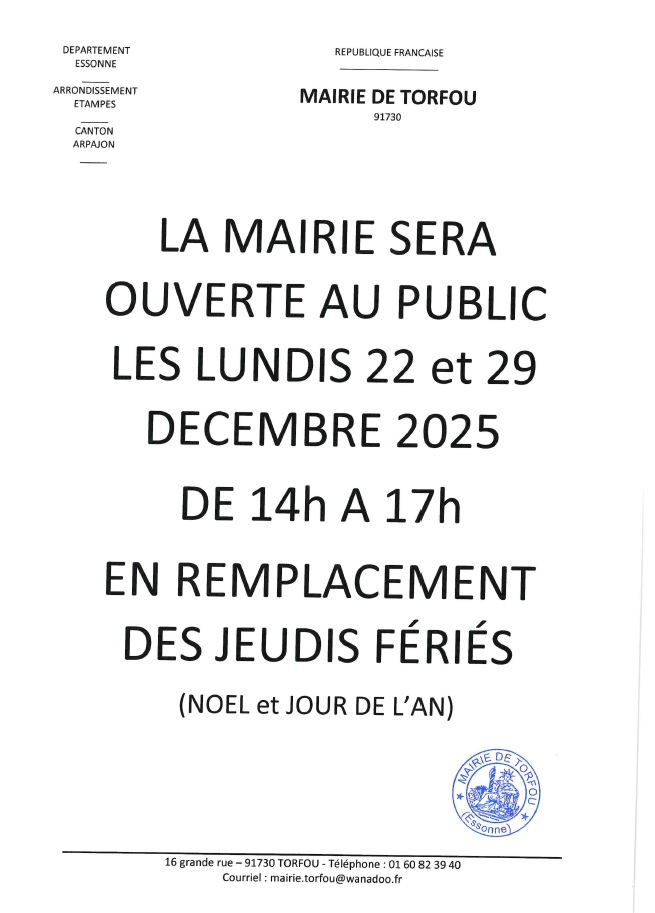 22 et 29 Décembre - Ouvertures exceptionnelles de la mairie