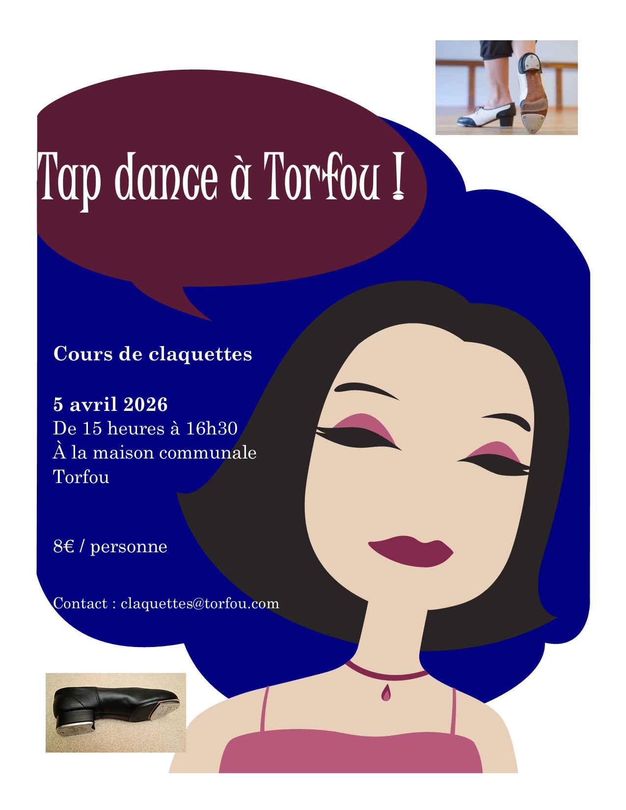 Cours de claquettes à la maison communale de Torfou (contre l'église) dimanche 5 avril de 15h à 16h30 organisé par Alexandra.